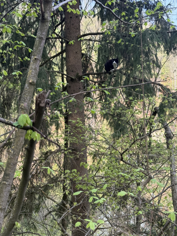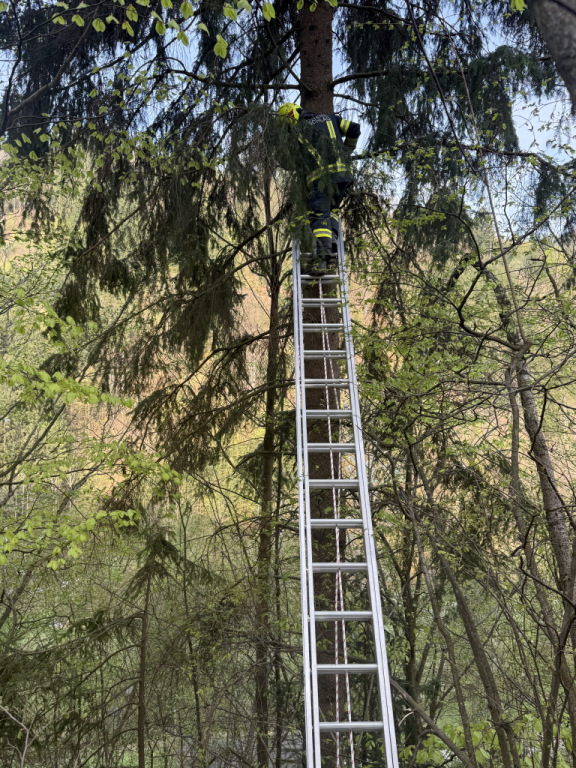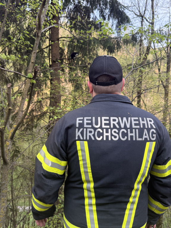 Dort saß eine Katze auf einem Baum fest und konnte sich trotz Zurufen ihrer Besitzer nicht mehr selbst befreien.